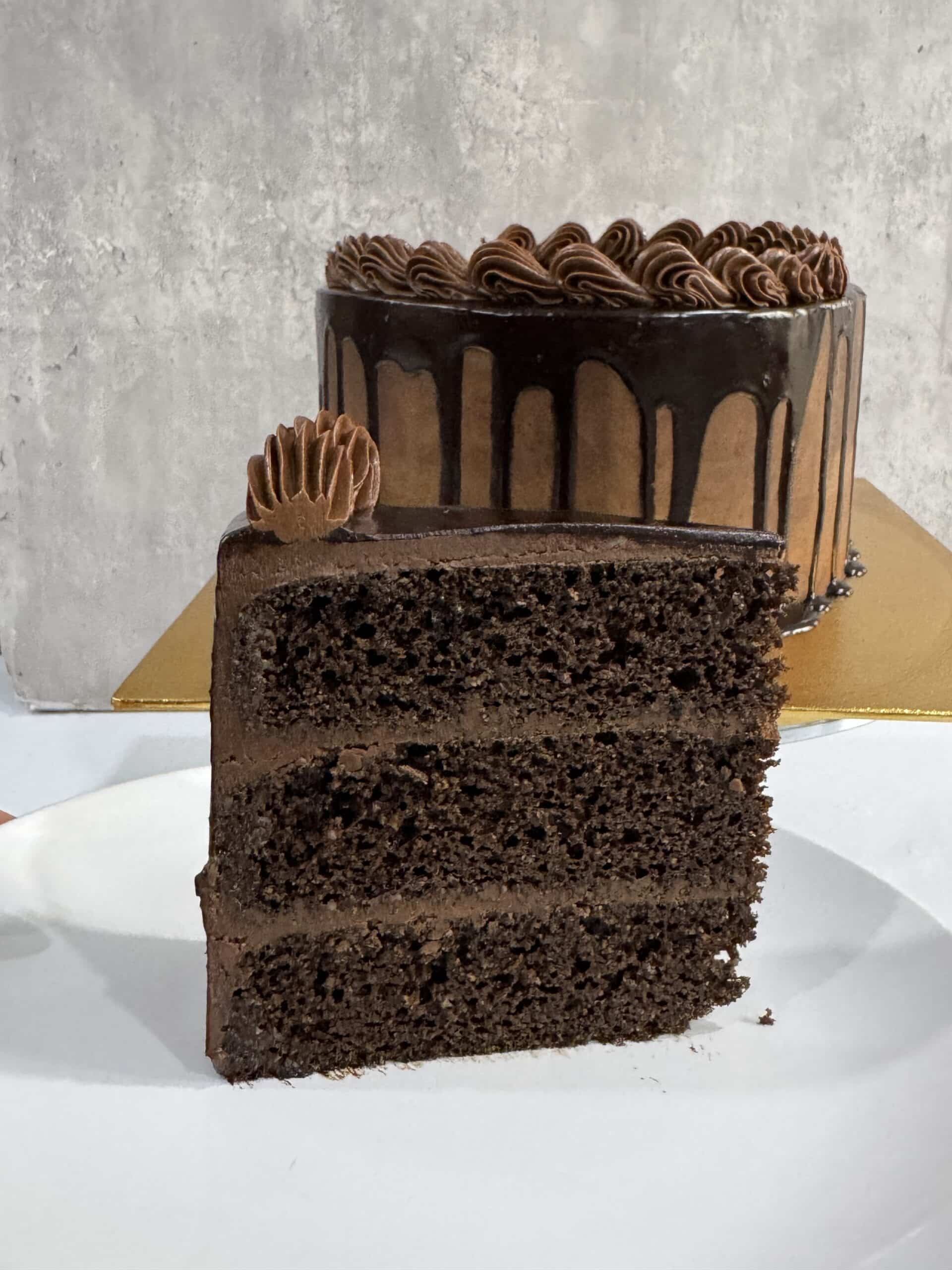 For Cake – Almond Flour, Lakanto as Sweetener, Coconut Flour, Vegetable Oil (Palm Oil), Eggs, Baking Powder, Vinegar, Unsweetened Cacao Powder, UHT Heavy Cream (DAIRY FREE option will be using Coconut Cream), Vanilla Extract