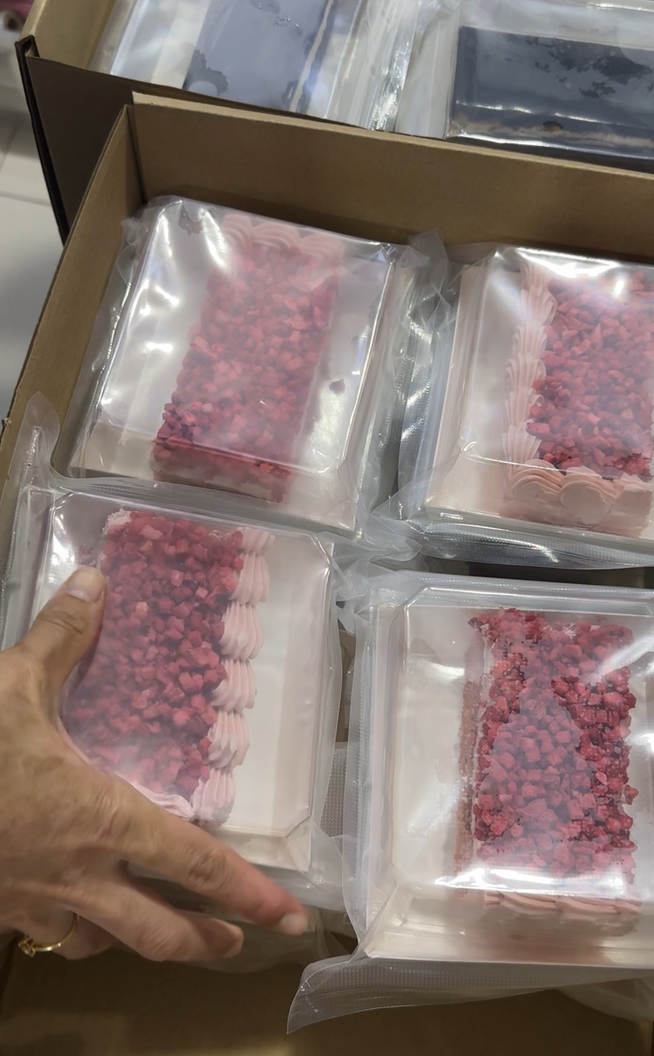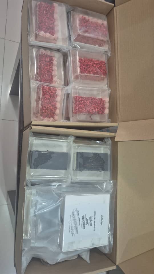 We cut and put in freezer friendly packaging for you. The amount is varied based on your option after discussion. Minimum is 8 for 9 x 9 inch cake. Please contact us so that we can advise u on the cutting and packaging fee.